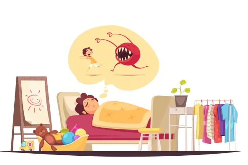 الكوابيس هي التي يراها الطفل في المرحلة الأخيرة من نومه، ويتذكرها جيداً عند استيقاظه ويمكنه ان يسردها لك، وتكون علامات الخوف والانزعاج ظاهرة لديه أثناء النوم وتبدأ هذه الأحلام المزعجة للطفل في عمر السنتين.
